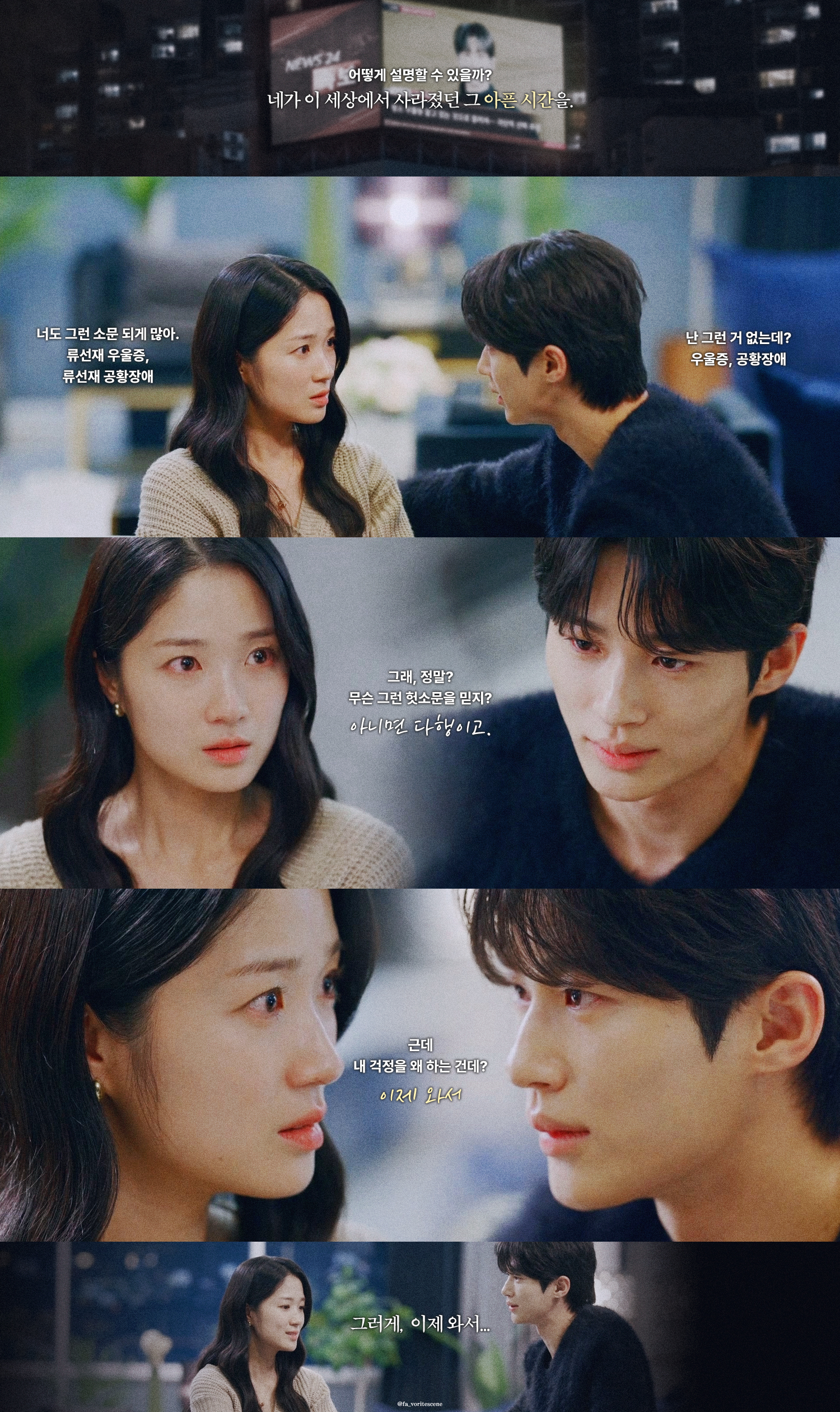 34-2 선재는 34솔과의 6화까지의 추억 + 병원에서 차인 기억+ 20솔 '너보면 무서워' 까지라서 우울증까지는 안 간 거로 보임. (2023년 1월 1일에 만나기로 약속한 것도 있으니...)